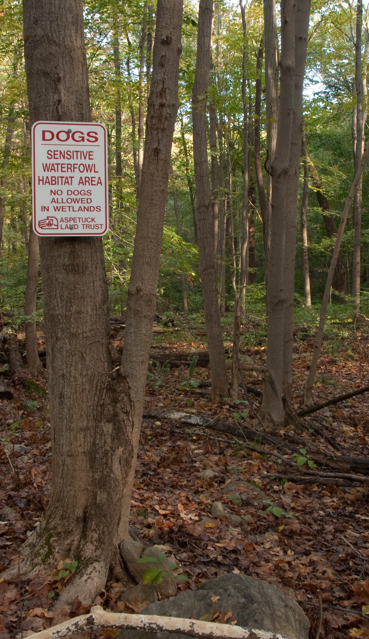 The new policies will go into effect April 1, 2013, affecting the existing 21-mile trail system at Trout Brook Valley used by hikers, mountain bikers, equestrians, dog walkers, birders, and others who enjoy the preserve. Until that time, dogs must be leashed at all times throughout the preserve to allow Aspetuck Land Trust time to make trail and signage modifications and to better protect the environment and preserve the abundant but fragile wildlife diversity that exists. Aspetuck Land Trust allows off leash dog walking on all of its other forty-one nature preserves with the exception of the Newman Poses preserve in Westport where dogs must be leashed.