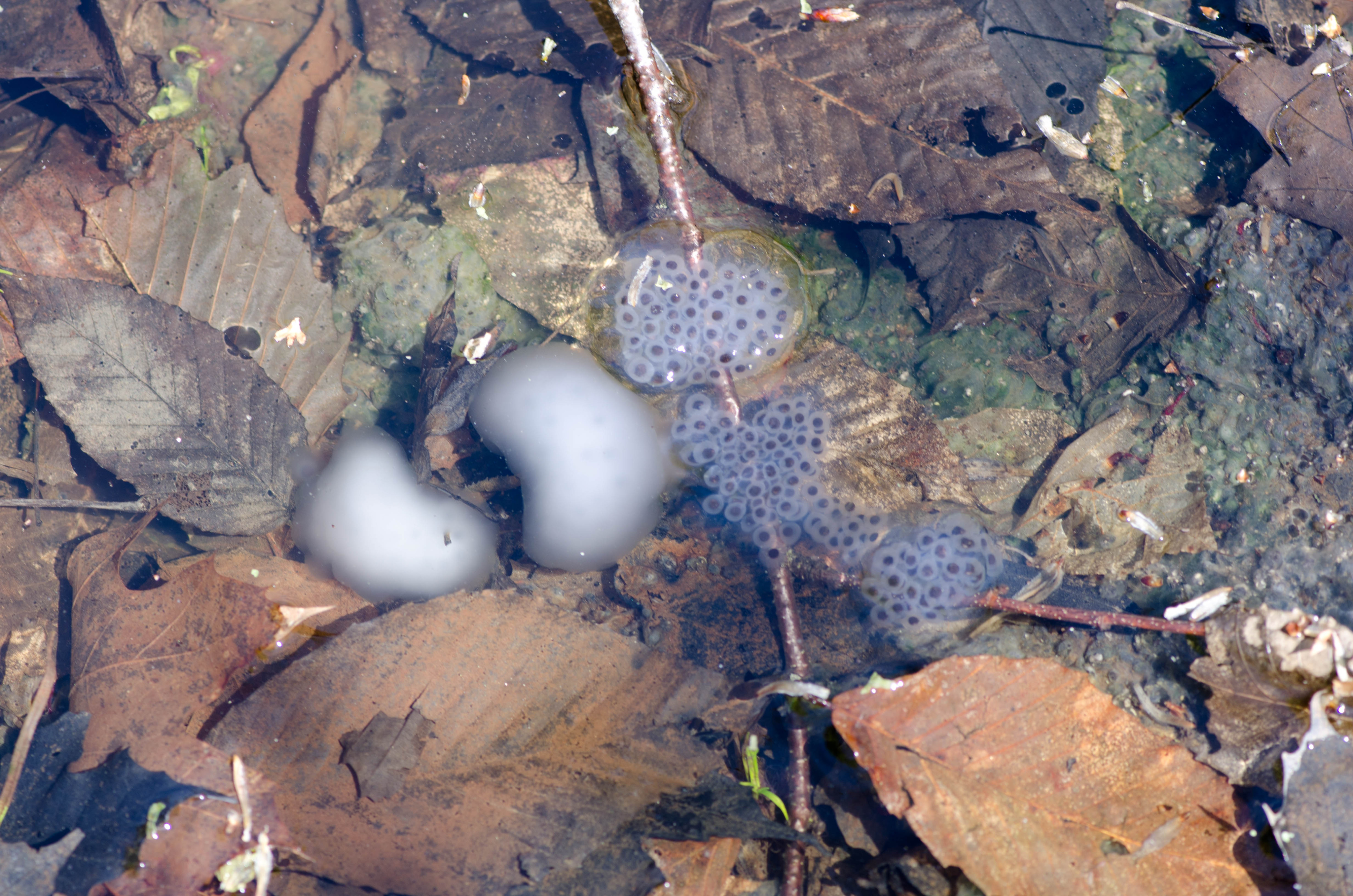 Dozens of vernal pools and other wetlands are home to species such as Spotted Salamander, the eggs of which are shown here. Spotted Salamanders lay their eggs in early spring. Photo copyright Connecticut Audubon Society.