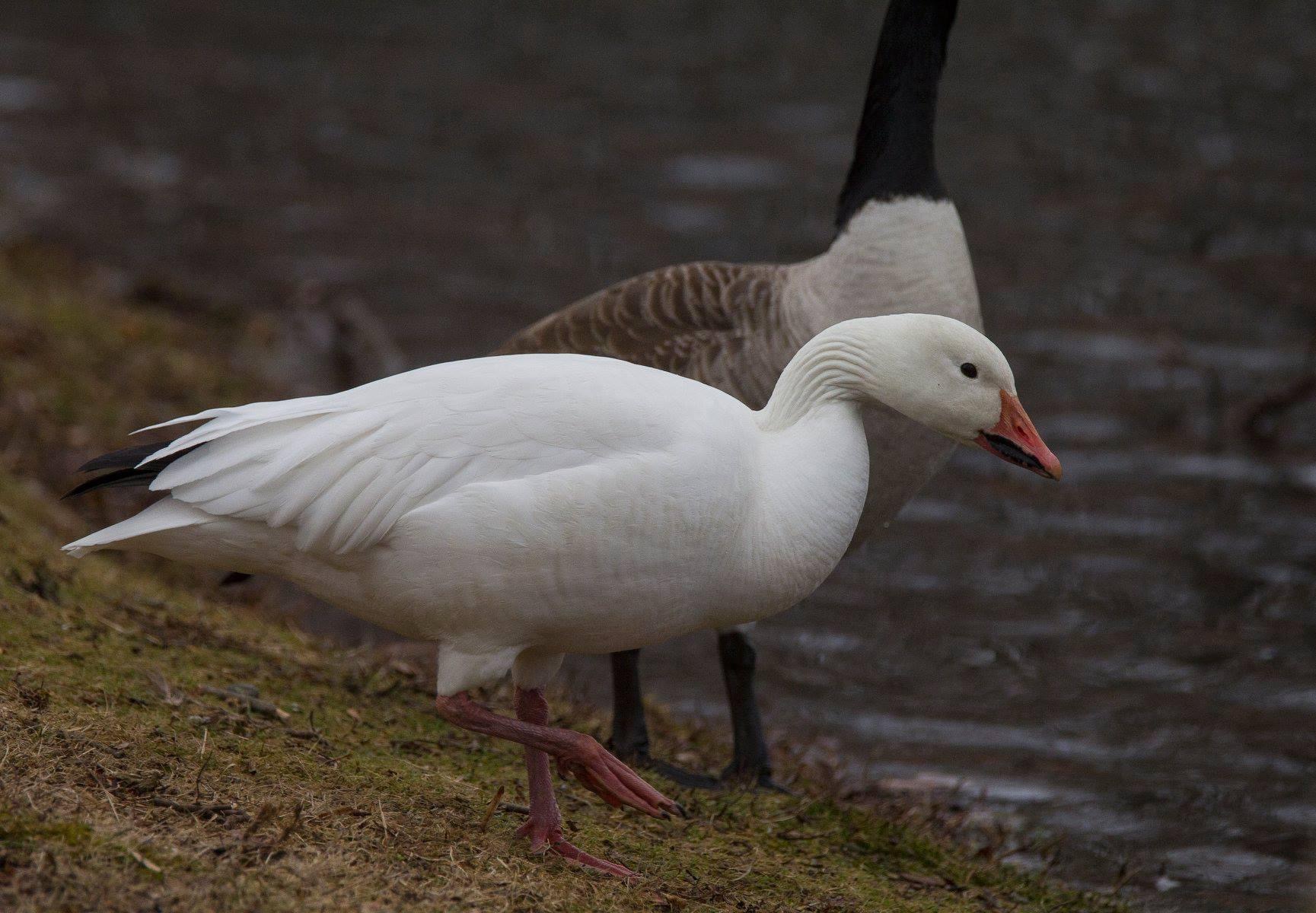 Snow Goose, in front of Canada Goose. Photo by Christina Cole.
